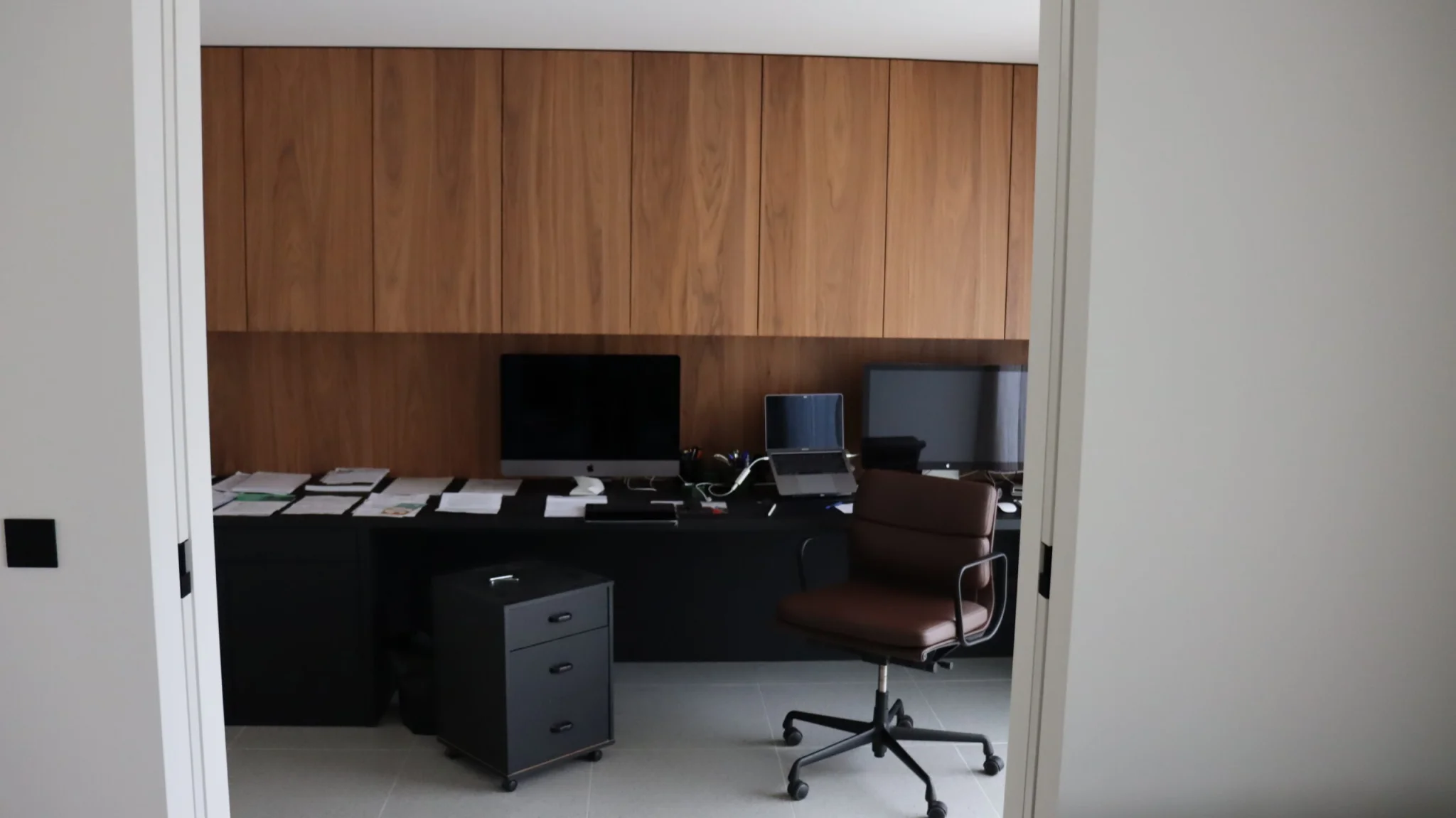 Aan de hand van uw werkwensen bepalen we samen de juiste opstelling: werkbladbreedte en‑diepte, leggers of lades onder of naast het blad, opbergsystemen aan zijkanten, kabelmanagement, verlichting, en optimale loop‑ en zichtlijnen. Het bureau wordt zó ontworpen dat het écht onderdeel wordt van de ruimte — geen losstaand meubel, maar een geïntegreerd werkstation. -